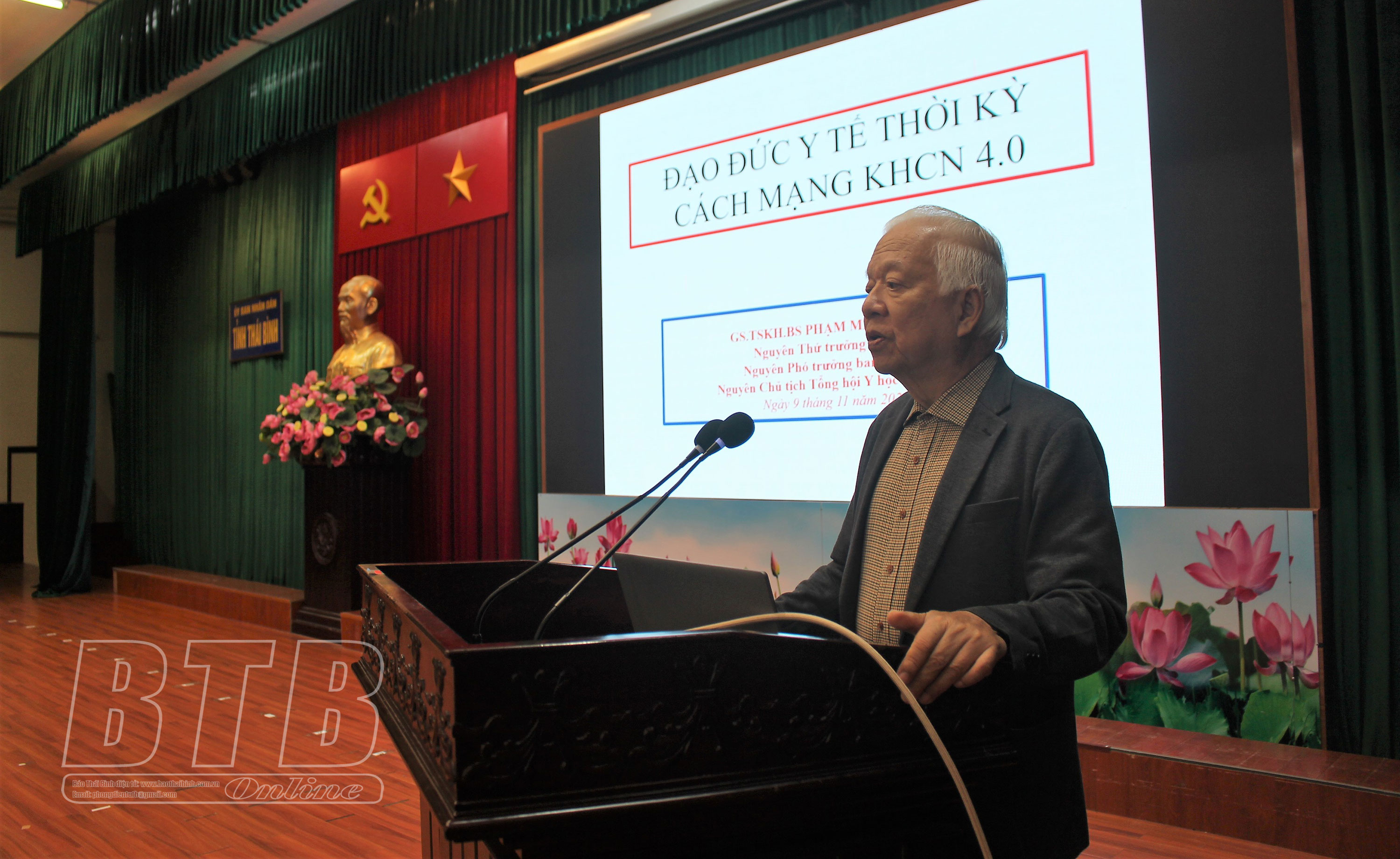 Hơn 500 đại biểu đến từ các đơn vị y tế trong tỉnh đã nghe GS.TS Nguyễn Mạnh Hùng, nguyên Phó Trưởng ban Tuyên giáo Trung ương, nguyên Thứ trưởng Bộ Y tế thông tin về những tiến bộ khoa học công nghệ đang ứng dụng trong ngành y, chuyển đổi của y học, y tế hiện nay; đồng thời chia sẻ những thách thức về đạo đức y tế khi áp dụng công nghệ cao. Thời đại 4.0 sẽ giúp người thầy thuốc có thêm nhiều cơ hội chăm sóc, cứu chữa cho người bệnh, song cũng đặt ra yêu cầu người thầy thuốc phải hăng say học tập và học tập suốt đời để có kiến thức, tay nghề phù hợp với sự phát triển khoa học tiên tiến. Trong tương lai, nhiều khâu thực hành y học sẽ do máy móc nhân tạo và trí tuệ nhân tạo thực hiện nhưng không vì thế mà các bác sĩ, nhân viên y tế ỷ lại vào công nghệ, lạm dụng kỹ thuật cao, không lấy người bệnh làm thử nghiệm.
