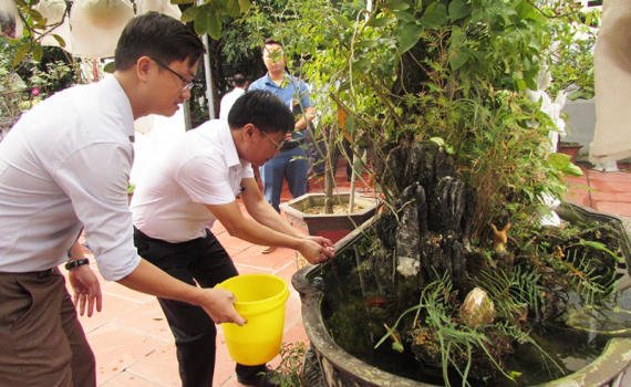 Thả cá diệt bọ gậy phòng, chống dịch bệnh sốt xuất huyết.