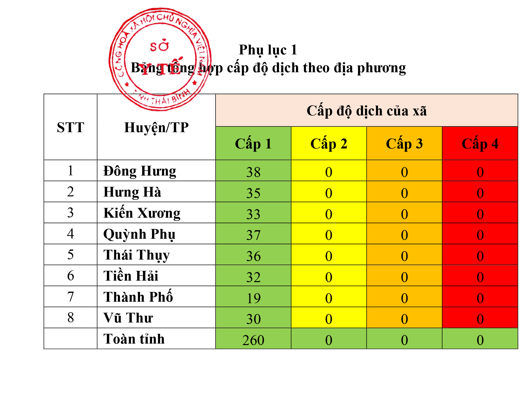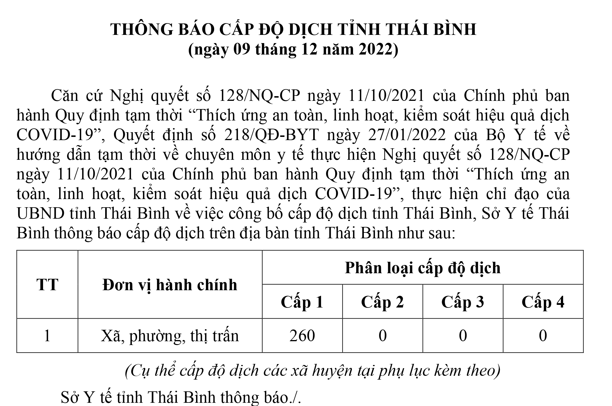 Thông báo cấp độ dịch tỉnh Thái Bình (ngày 9/12/2022)