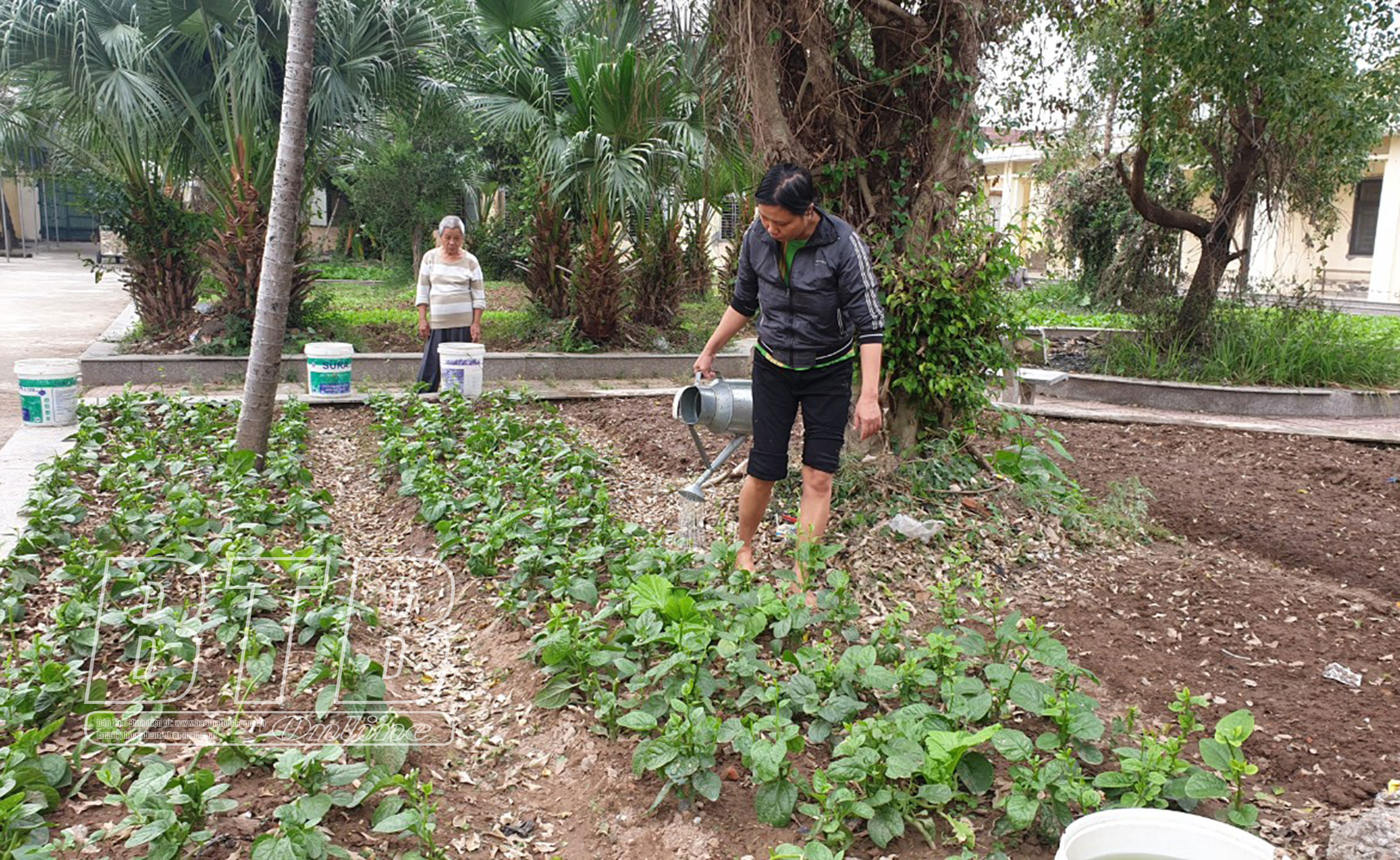Bệnh nhân điều trị tại Trung tâm Chăm sóc và Phục hồi chức năng cho người tâm thần chăm sóc vườn rau để nâng cao sức khỏe.