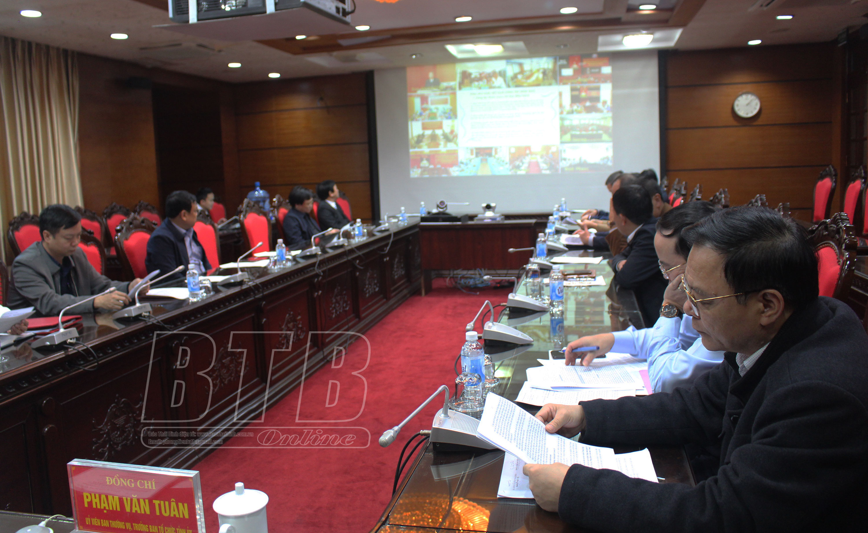 Đồng chí Trương Thị Mai, Ủy viên Bộ Chính trị, Bí thư Trung ương Đảng, Trưởng ban Tổ chức Trung ương, Trưởng ban Bảo vệ, chăm sóc sức khỏe cán bộ Trung ương chủ trì hội nghị. Dự hội nghị tại điểm cầu Thái Bình có các đồng chí: Nguyễn Tiến Thành, Phó Bí thư thường trực Tỉnh ủy, Chủ tịch HĐND tỉnh; Phạm Văn Tuân, Ủy viên Ban Thường vụ, Trưởng ban Tổ chức Tỉnh ủy, Trưởng ban Bảo vệ, chăm sóc sức khỏe cán bộ tỉnh; lãnh đạo một số sở, ngành, địa phương, đơn vị.