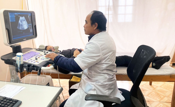 Bác sĩ Trần Khánh Toàn siêu âm cho người bệnh.