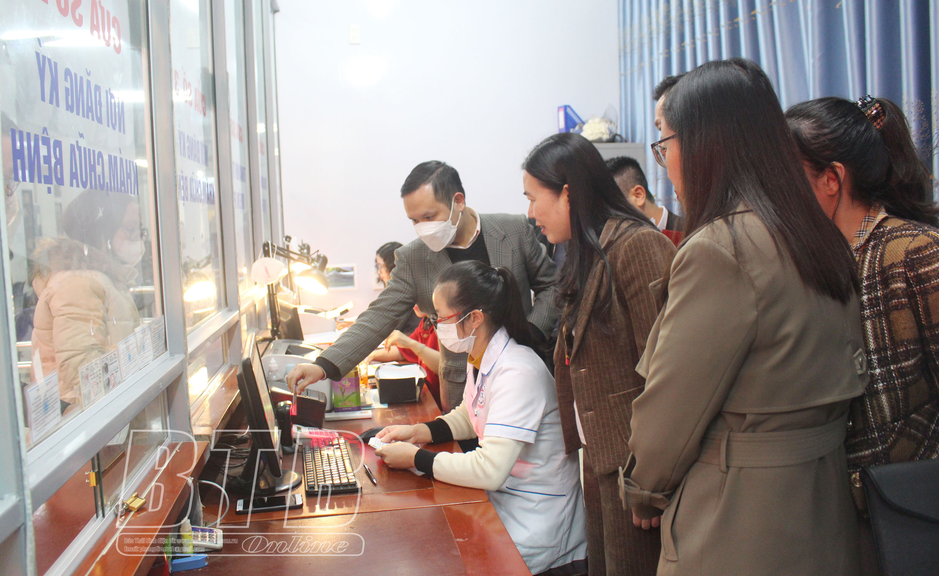 Đồng chí Trần Thị Bích Hằng, Tỉnh ủy viên, Phó Chủ tịch UBND tỉnh kiểm tra việc triển khai dùng thẻ căn cước công dân gắn chíp thay cho thẻ bảo hiểm y tế tại Bệnh viện Đa khoa huyện Kiến Xương.