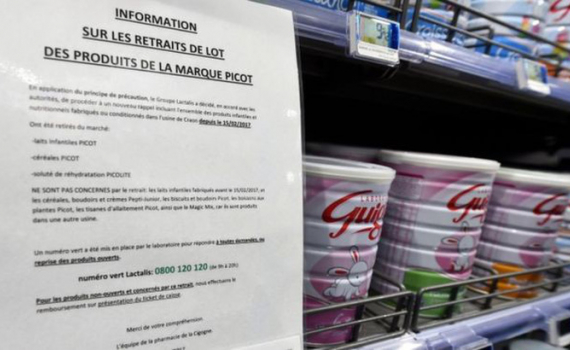 Tháng 1-2018, Lactalis đã thu hồi toàn bộ lô sữa bột sản xuất tại nhà máy Craon, ước tính hơn 12 triệu hộp. Lactalis cho biết, lô sữa nhiễm khuẩn được sản xuất vào nửa đầu năm 2017.