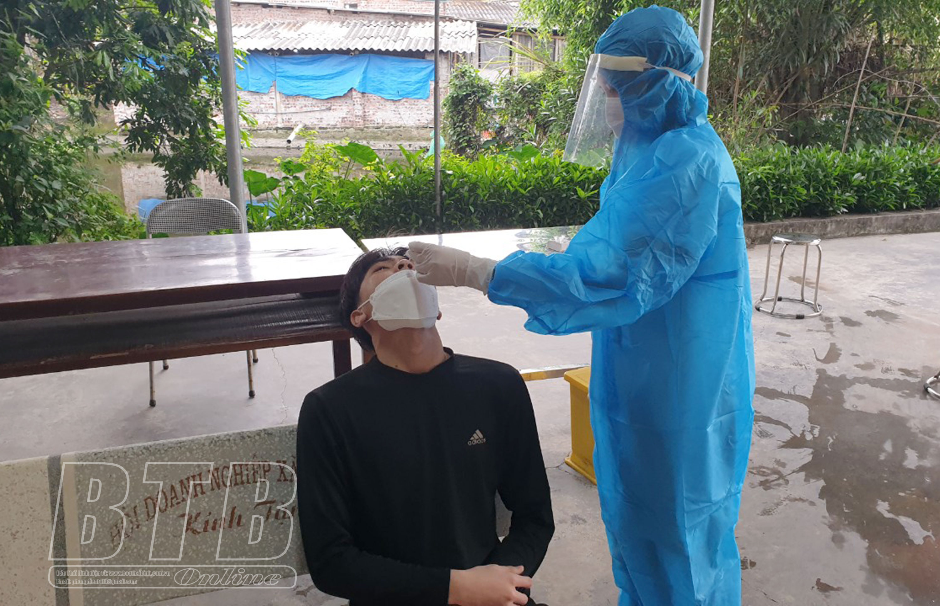 Người dân test nhanh Covid-19 tại Trạm Y tế xã An Vinh (Quỳnh Phụ).