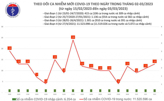 Ngày 3/3, cả nước có 13 ca mắc COVID-19
