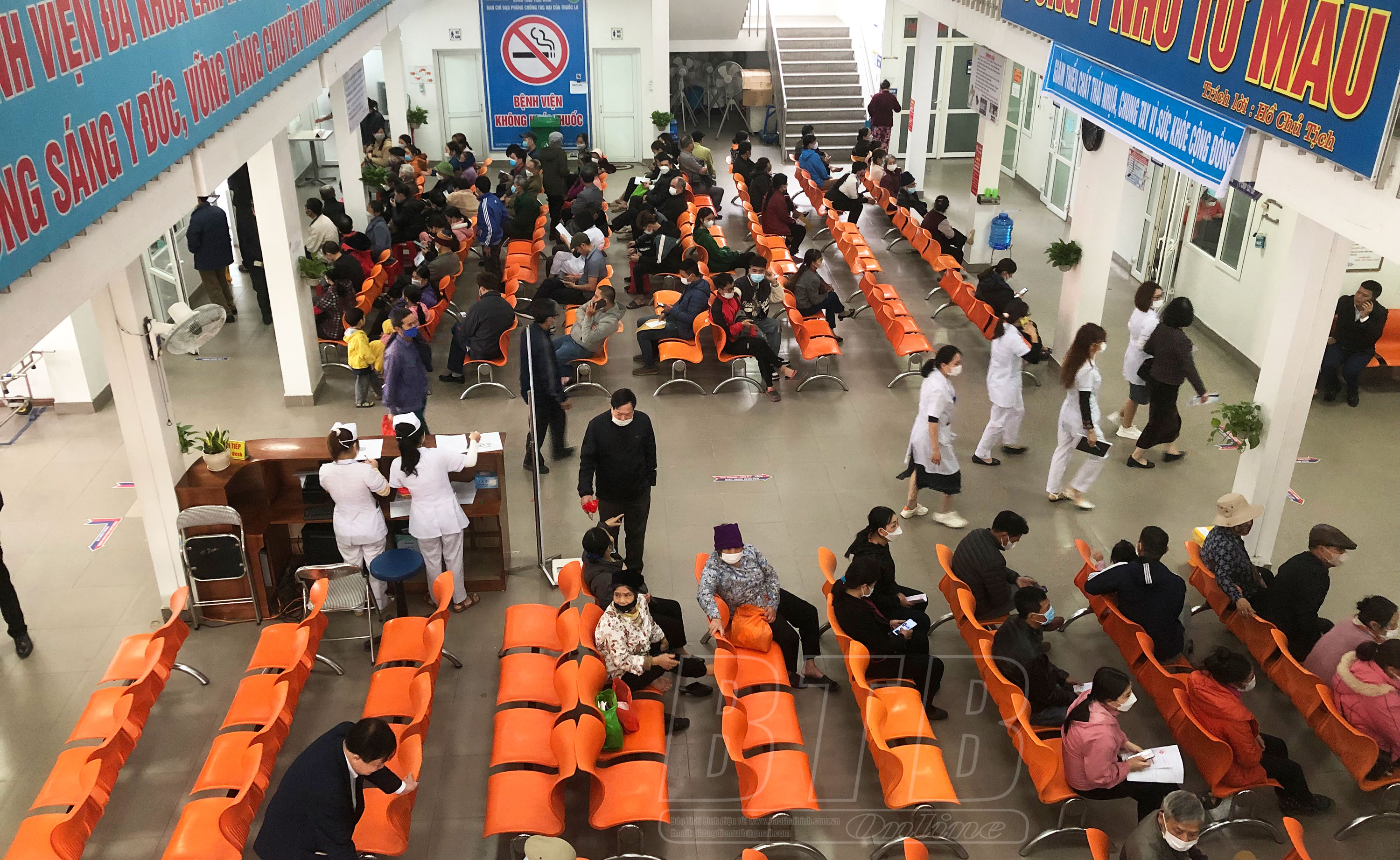 Người dân đến khám, chữa bệnh tại Bệnh viện Đa khoa Lâm Hoa Hưng Hà.