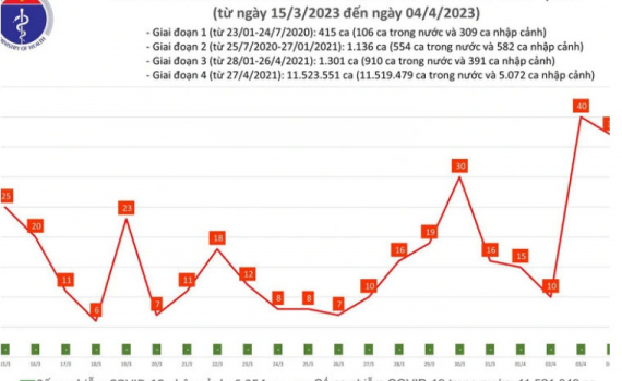 Về tình hình điều trị, theo số liệu do Sở Y tế các tỉnh, thành phố báo cáo hàng ngày trên Hệ thống quản lý của Cục Quản lý Khám, chữa bệnh, Bộ Y tế, trong ngày 4/4, có 3 bệnh nhân được công bố khỏi bệnh, nâng tổng số ca bệnh được điều trị khỏi lên 10.614.991 ca. Hiện có 5 bệnh nhân đang thở oxy qua mặt nạ. Tiếp tục không ghi nhận bệnh nhân tử vong do COVID-19.