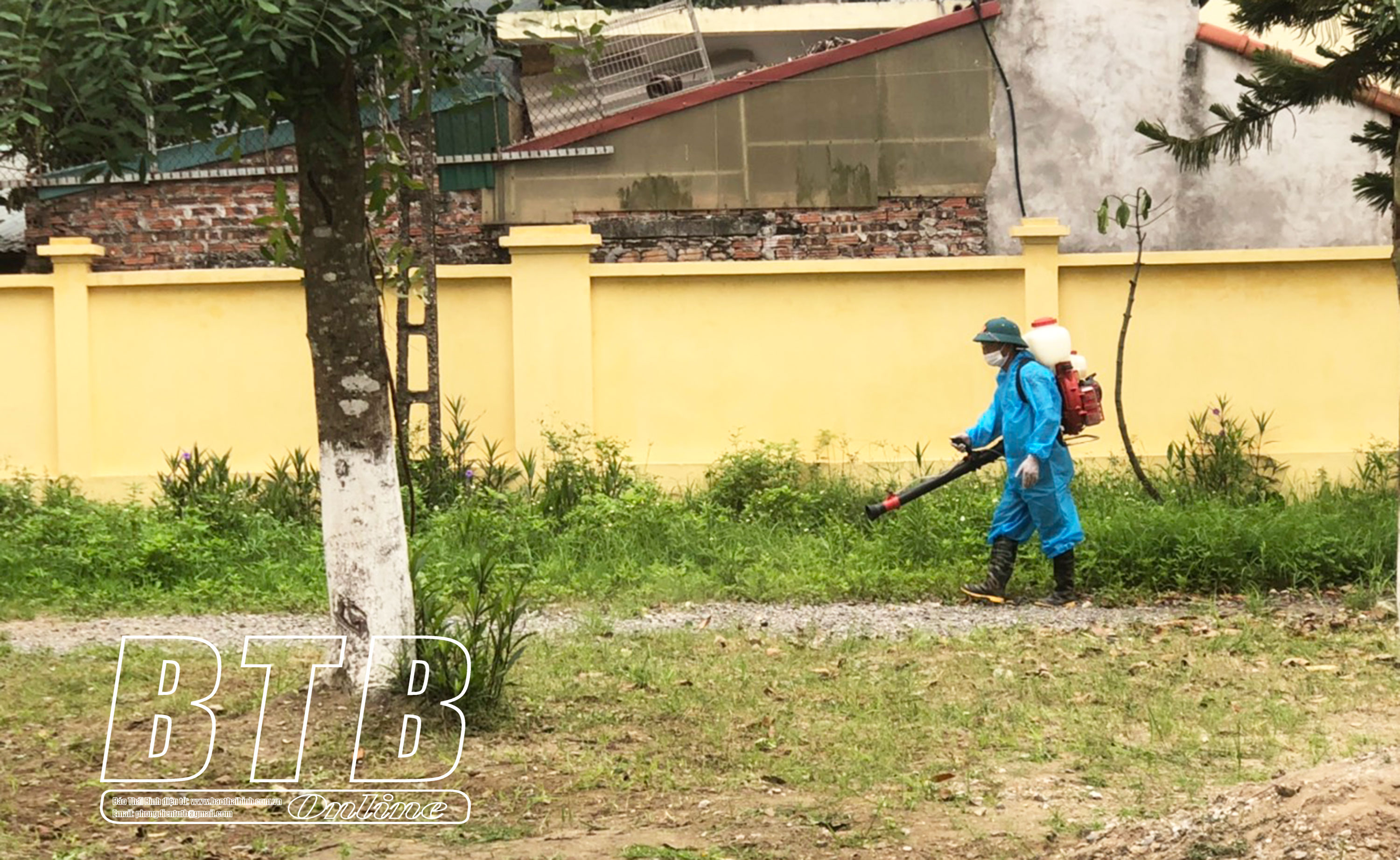 Nhân viên y tế phun thuốc diệt muỗi tại xã Đông Đô (Hưng Hà).