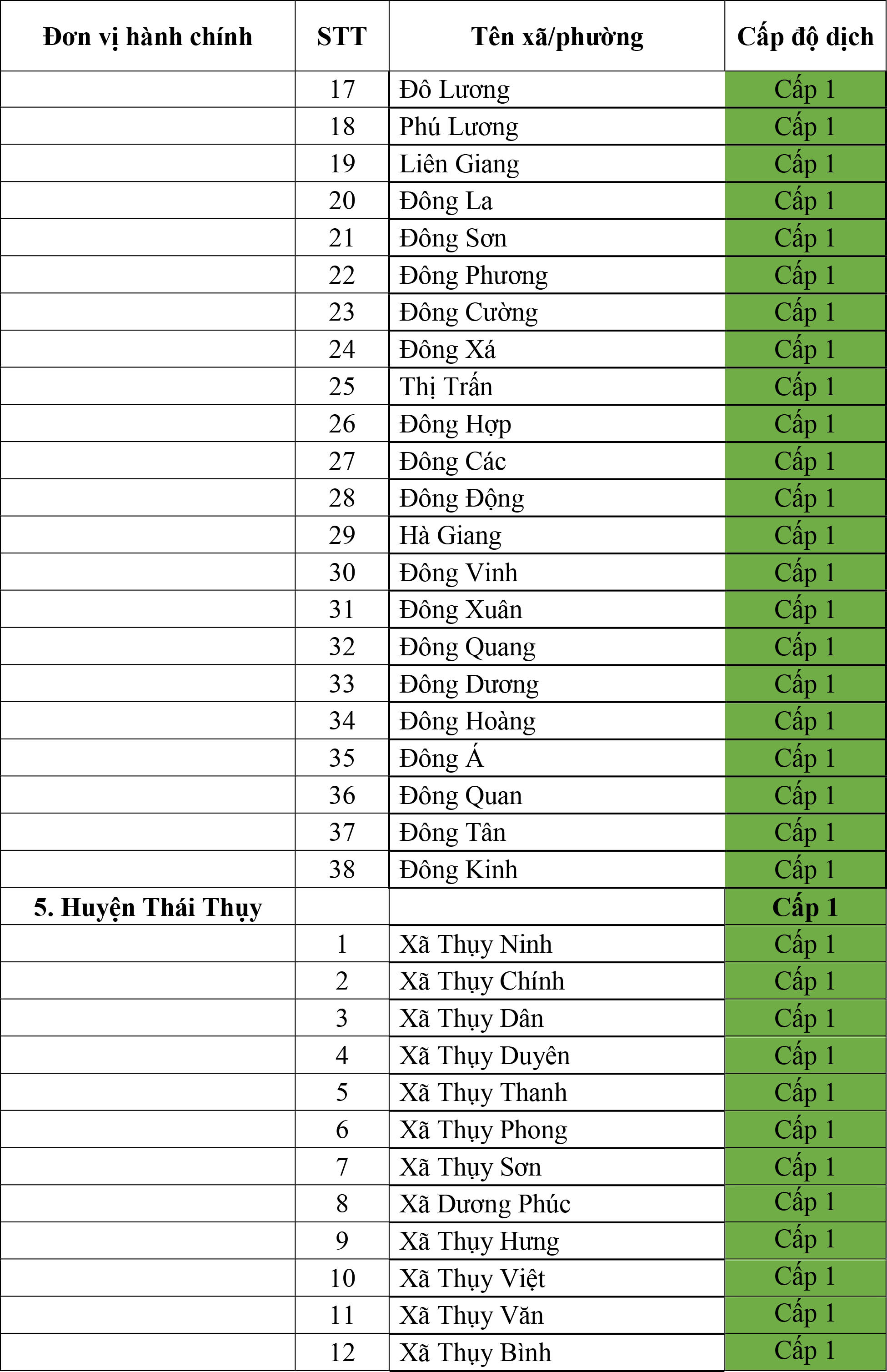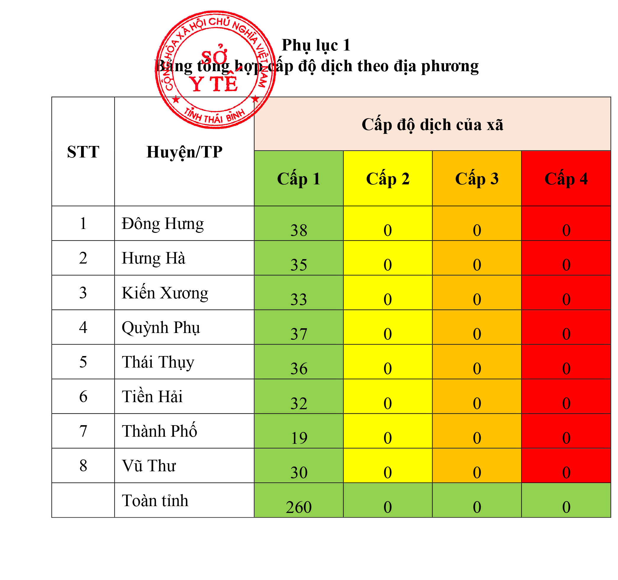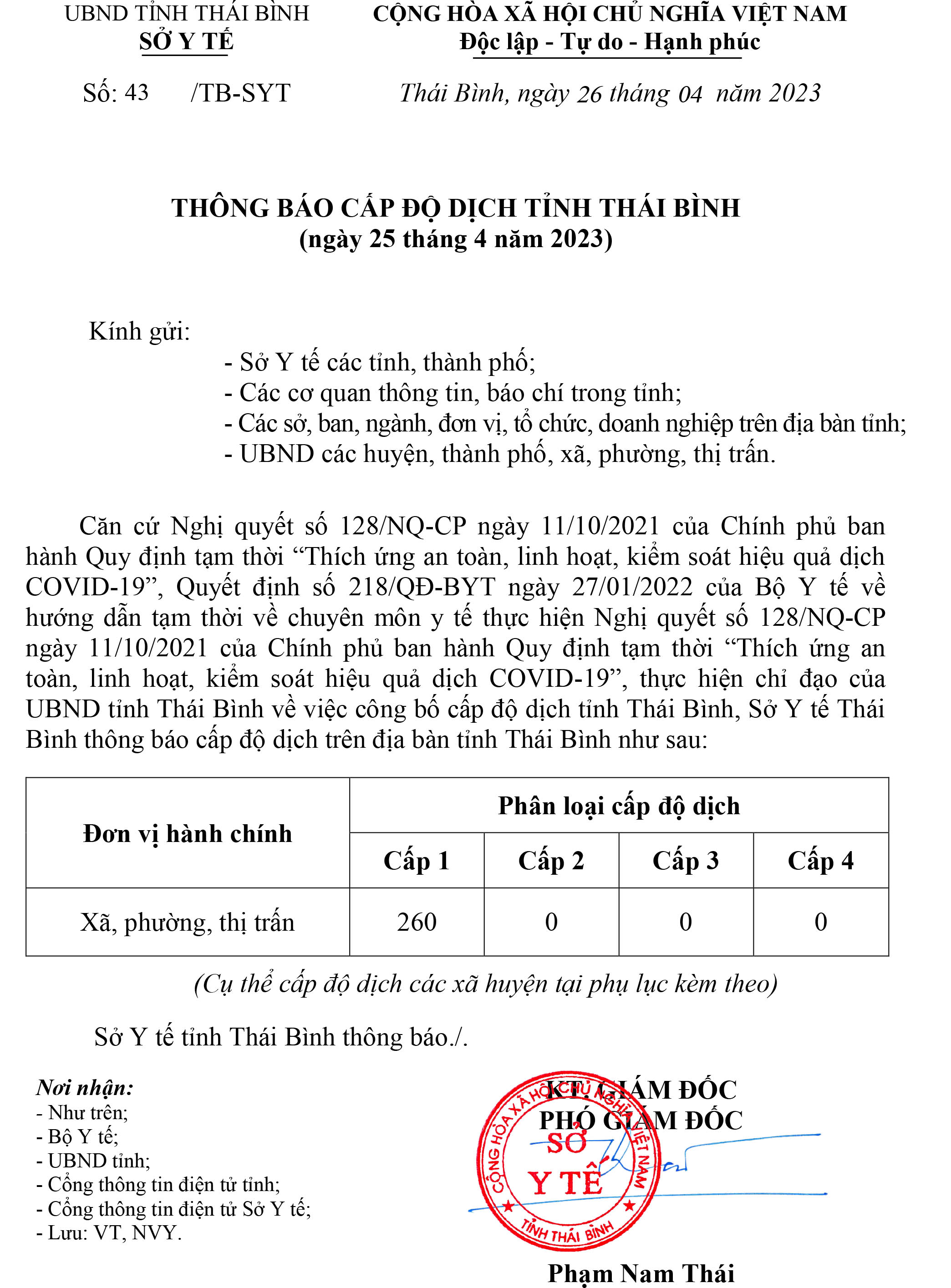 Thông báo cấp độ dịch tỉnh Thái Bình (ngày 25/4/2023)