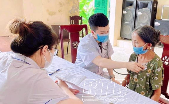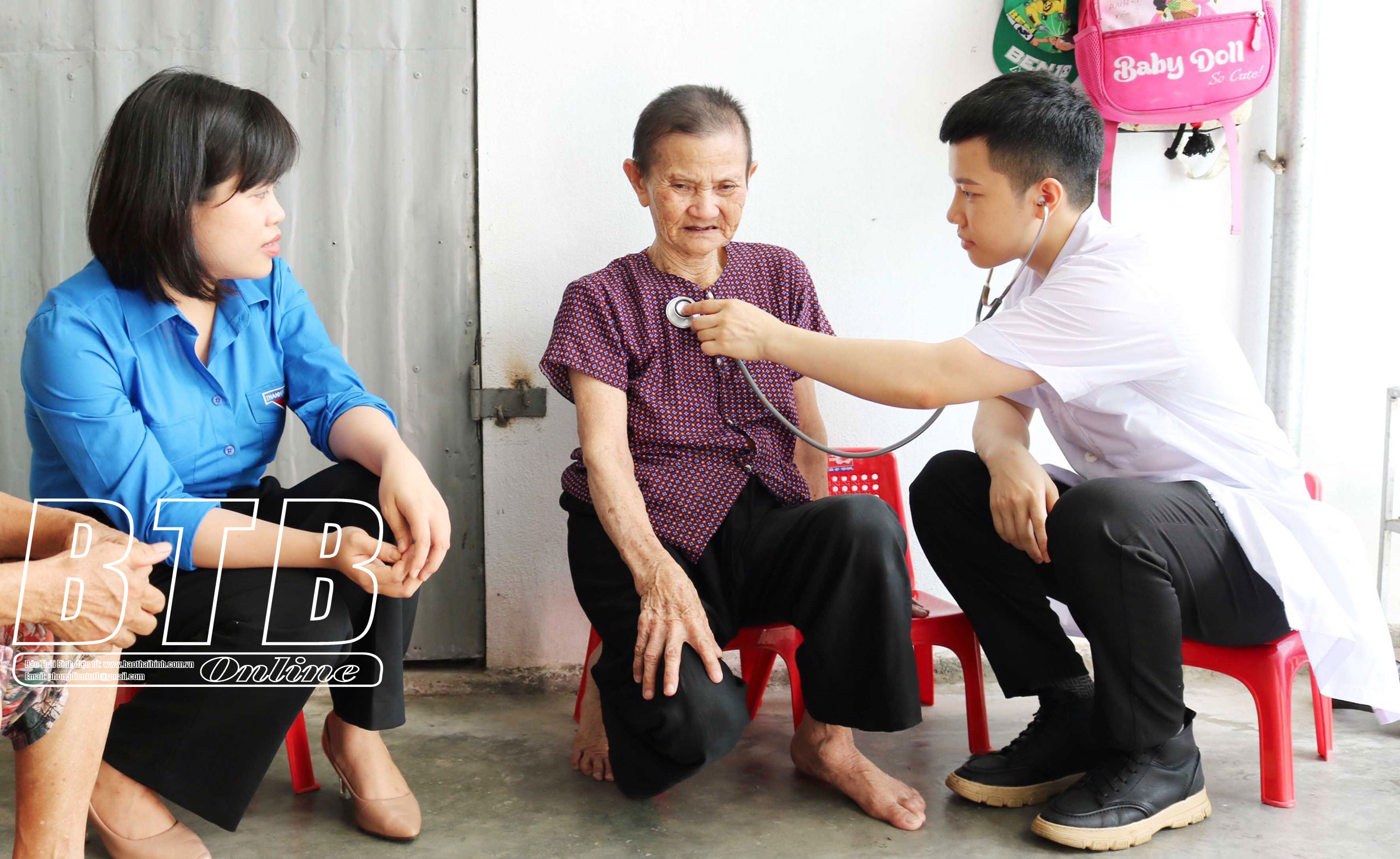 Thầy thuốc trẻ huyện Vũ Thư khám bệnh cho người cao tuổi.