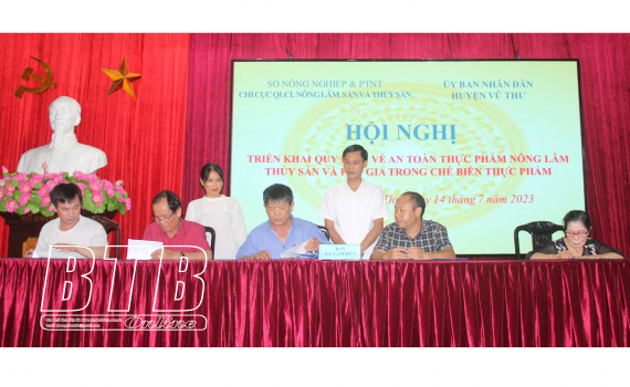 Cũng tại hội nghị diễn ra lễ ký kết giữa đại diện lãnh đạo huyện Vũ Thư, một số xã về trách nhiệm quản lý nhà nước về an toàn thực phẩm; giữa các xã và chủ hộ sản xuất, kinh doanh về không sử dụng hàn the trong chế biến giò, chả…