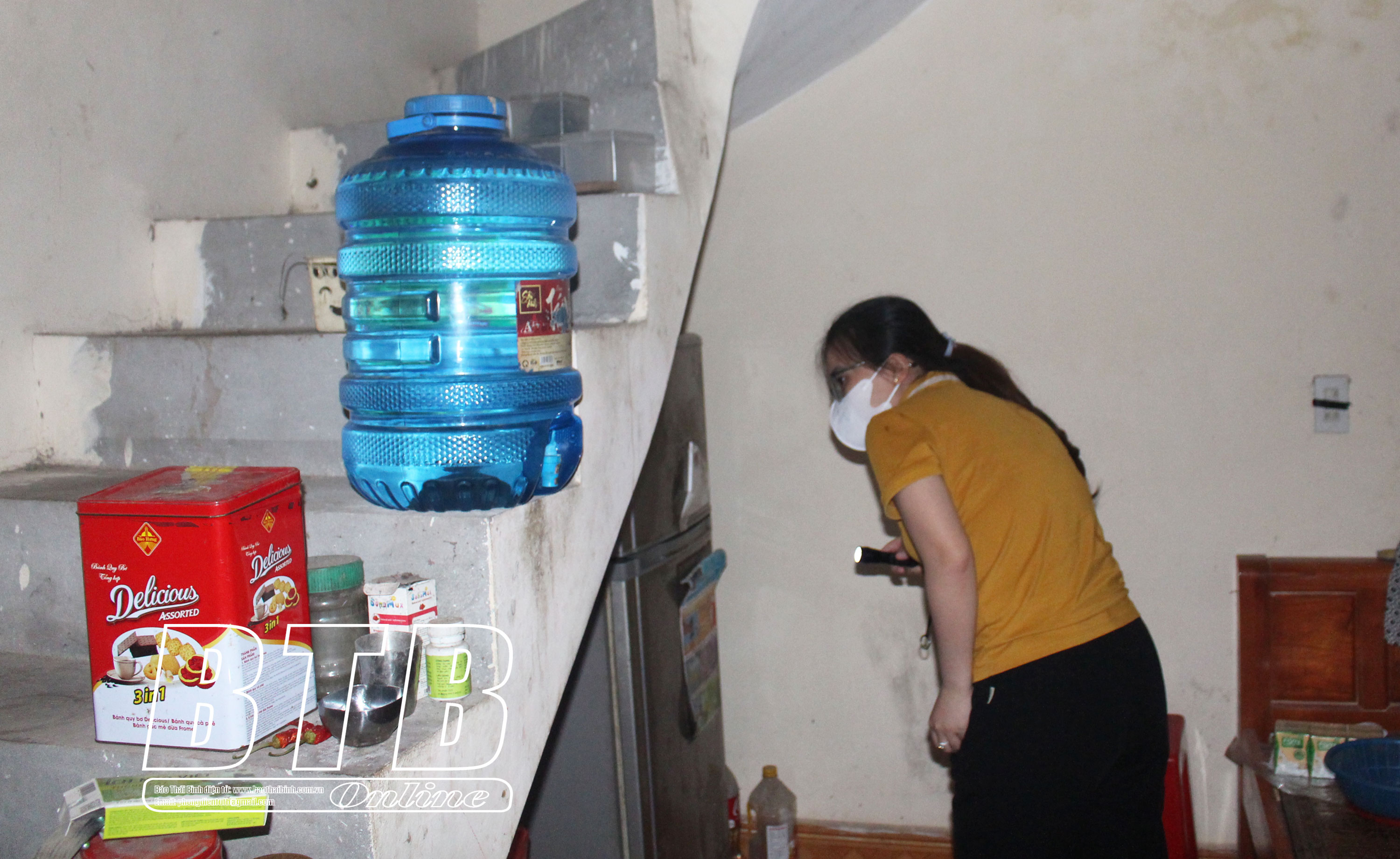 Cán bộ Trung tâm Kiểm soát bệnh tật tỉnh điều tra, giám sát bọ gậy, muỗi truyền bệnh sốt xuất huyết tại xã Thống Nhất (Hưng Hà).