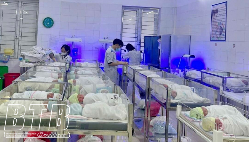 Trẻ sơ sinh được chăm sóc, theo dõi tại phòng chăm sóc thường quy, Khoa Sơ sinh, Bệnh viện Phụ sản Thái Bình.