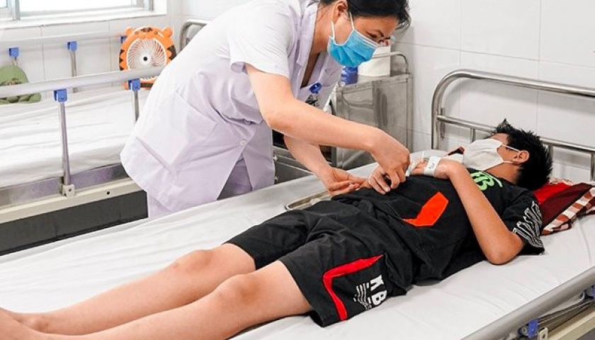 Bệnh nhi mắc sốt xuất huyết điều trị tại Bệnh viện Nhi trung ương.