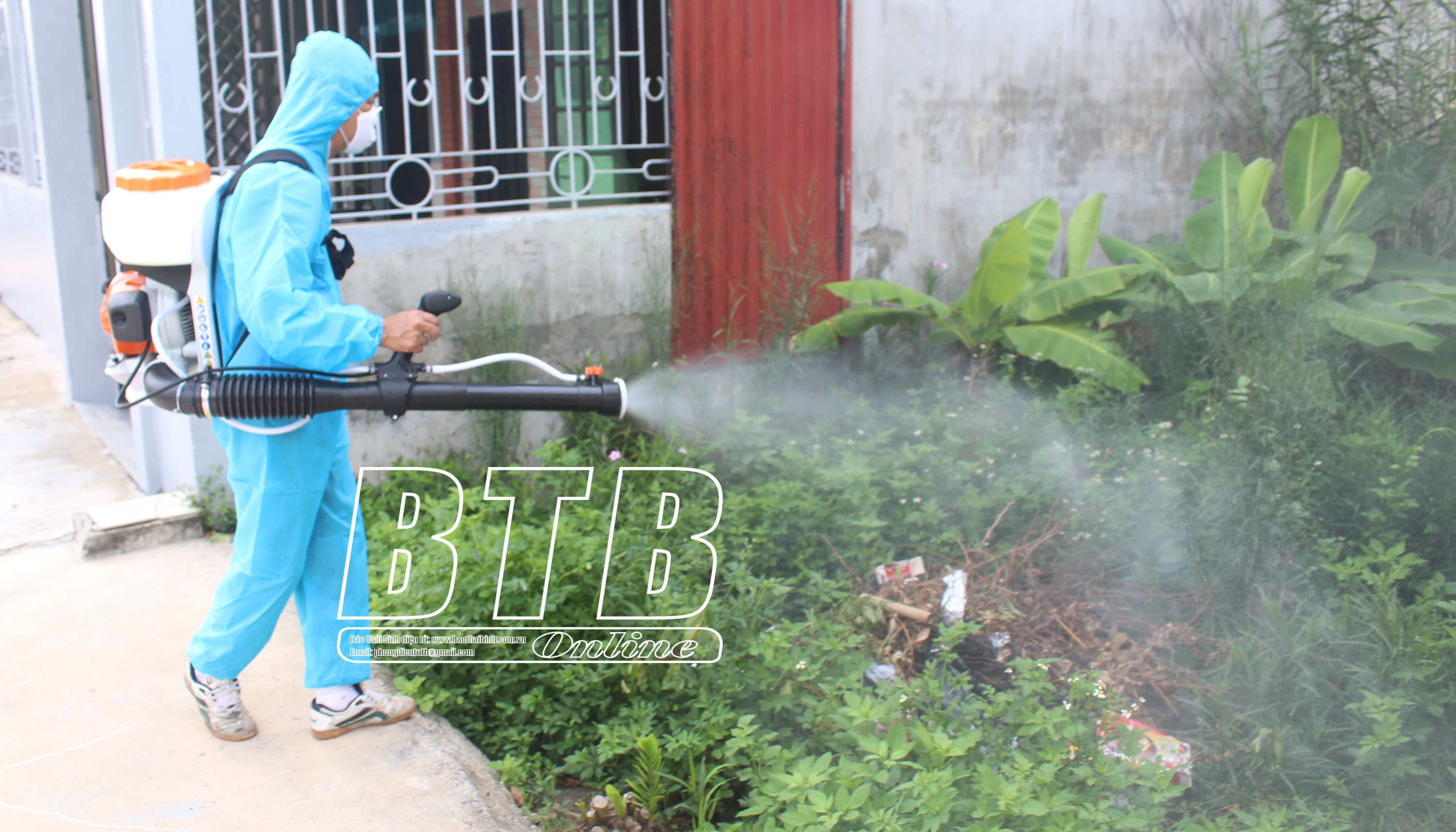 Nhân viên y tế phun thuốc diệt muỗi tại xã Đông Trung (Tiền Hải).