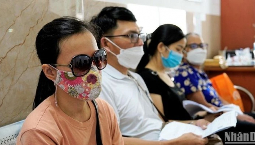 Bệnh nhân khám đau mắt đỏ tại Bệnh viện Mắt Trung ương. (Ảnh: THẾ KHẢI)