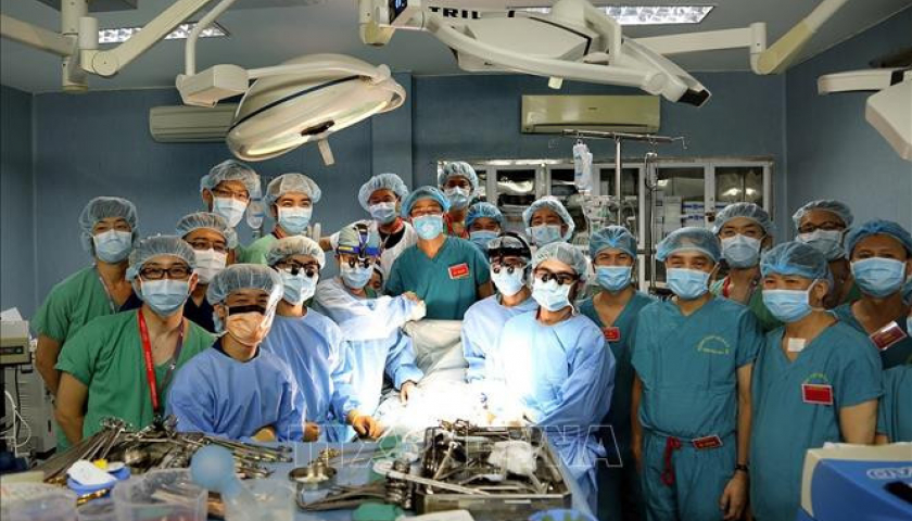 Kíp phẫu thuật của Bệnh viện Quân y 103 thực hiện thành công ca ghép phổi đầu tiên từ người sống. Ảnh (tư liệu): Dương Ngọc/TTXVN