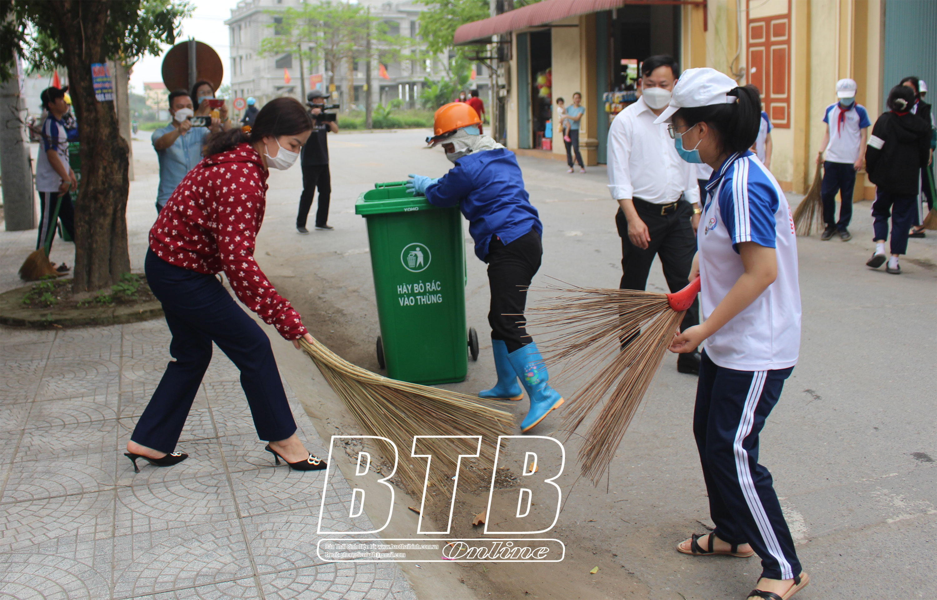 Học sinh tham gia vệ sinh môi trường phòng, chống dịch bệnh.