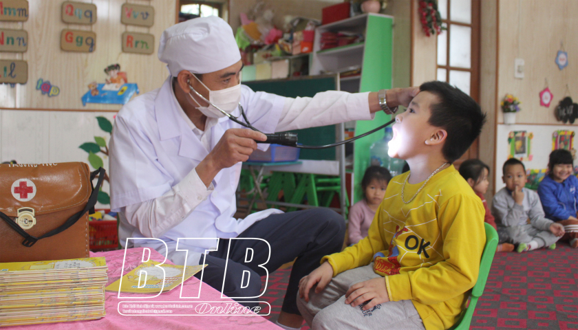 Thực hiện công tác chăm sóc sức khoẻ ban đầu cho học sinh, hàng năm, ngành y tế, ngành giáo dục đã phối hợp triển khai công tác truyền thông giáo dục sức khoẻ; các hoạt động phòng, chống dịch bệnh, vệ sinh môi trường; chăm sóc sức khoẻ tại trường; chăm sóc răng miệng học sinh; khám phát hiện tật khúc xạ; tẩy giun... Riêng năm học 2022 – 2023, ngành y tế và ngành giáo dục đã tích cực, chủ động triển khai các biện pháp phòng, chống dịch bệnh, tổ chức hướng dẫn các trường học phòng, chống dịch, xử lý môi trường, tăng cường công tác kiểm tra vệ sinh môi trường. Các trường đã tổ chức khám sức khoẻ, tẩy giun cho học sinh tiểu học; thực hiện chương trình uống vitamin A cho trẻ em mầm non. Qua thăm khám, tỷ lệ học sinh mắc các bệnh răng miệng chiếm khoảng 20%; tỷ lệ học sinh mắc tật khúc xạ chiếm khoảng 16% tổng số học sinh được quản lý sức khỏe.
