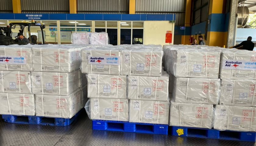 Tiếp nhận 490.600 liều vắc xin 5 trong 1 do Australia và UNICEF hỗ trợ