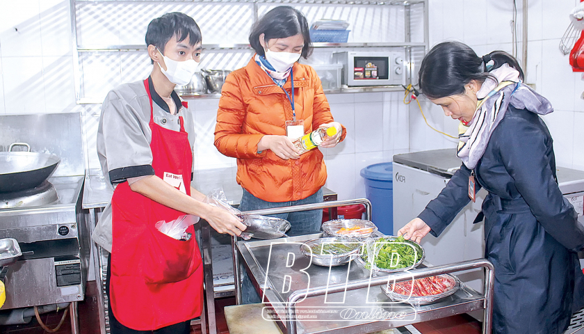 Cùng với kiểm tra các cơ sở sản xuất, chế biến, đoàn đã tiến hành kiểm tra các cơ sở kinh doanh dịch vụ ăn uống. Qua kiểm tra tại nhà hàng Sen Vàng (thành phố Thái Bình), các thành viên trong đoàn đánh giá cơ sở đã chấp hành việc lưu trữ hồ sơ, giấy tờ liên quan đến công tác bảo đảm ATTP, điều kiện cơ sở vật chất rộng rãi, dụng cụ chế biến thực phẩm đầy đủ, phù hợp; có đủ hóa đơn, hợp đồng mua bán nguyên liệu thực phẩm; bảo đảm quy định về kiểm thực 3 bước và lưu mẫu thức ăn.