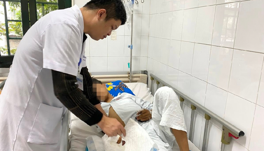 Một thiếu niên bị tai nạn nghiêm trọng do pháo nổ điều trị tại Bệnh viện Hữu nghị Việt-Đức.