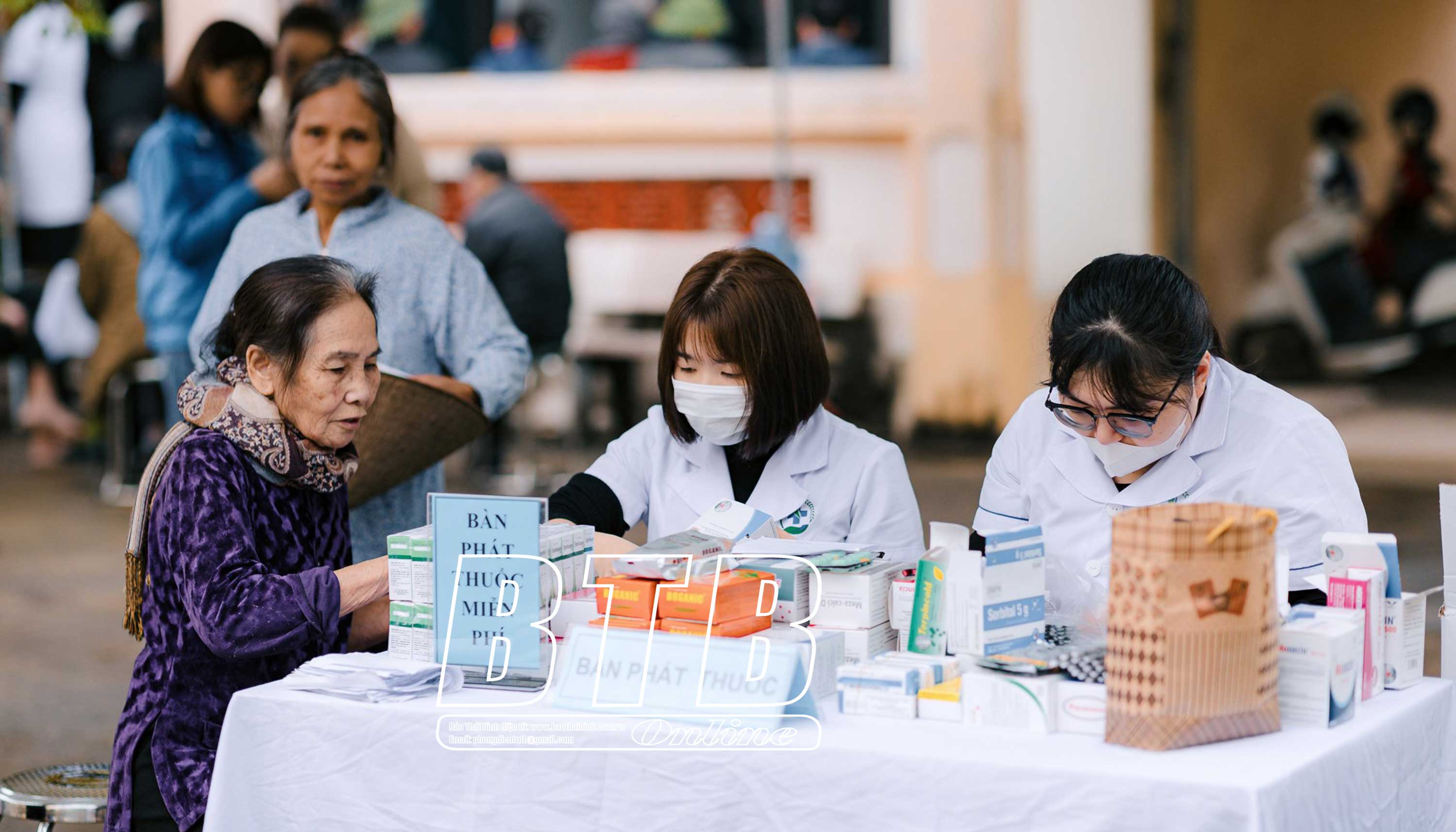 Người dân xã Lô Giang (Đông Hưng) được cấp thuốc miễn phí.
