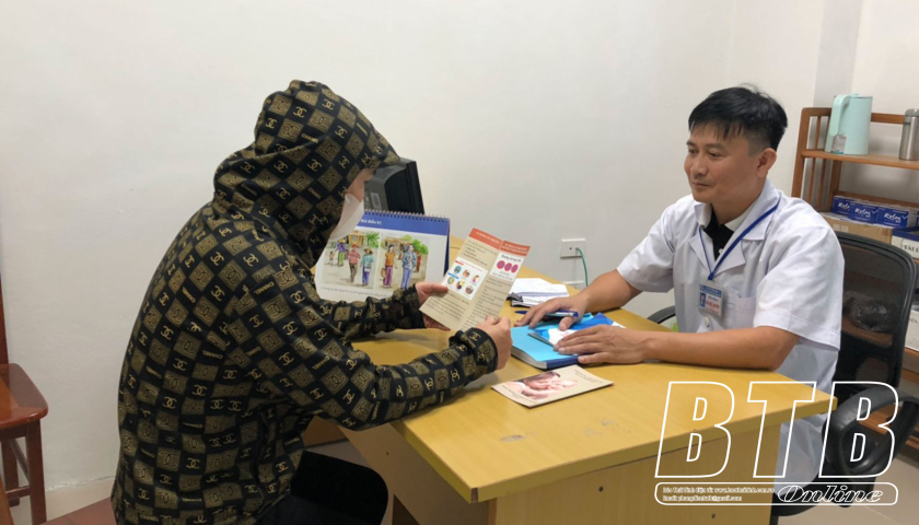 Cán bộ Trung tâm Kiểm soát bệnh tật tỉnh tư vấn, hướng dẫn người dân các biện pháp phòng lây truyền HIV từ mẹ sang con.