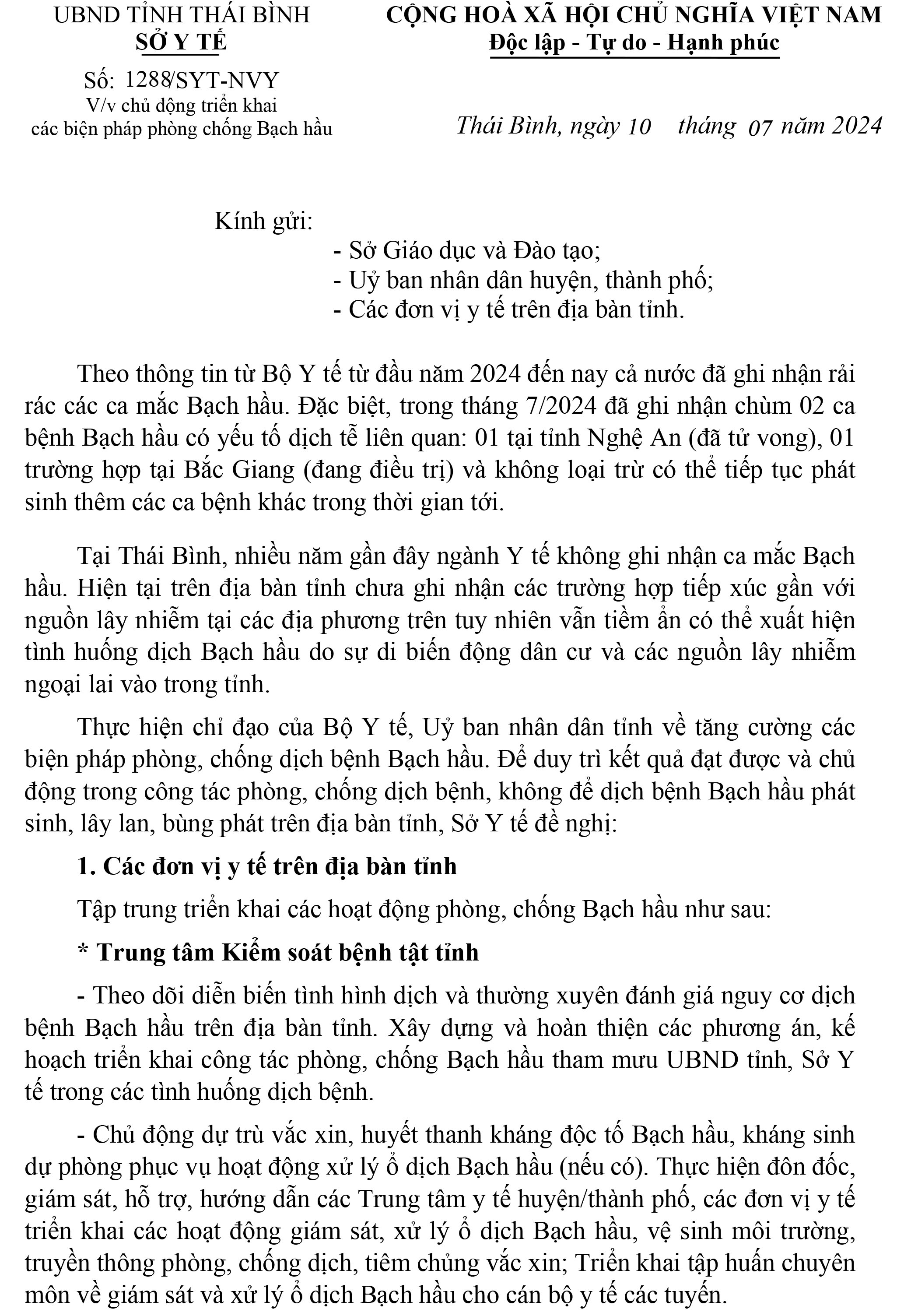 Chủ động triển khai các biện pháp phòng, chống Bạch hầu
