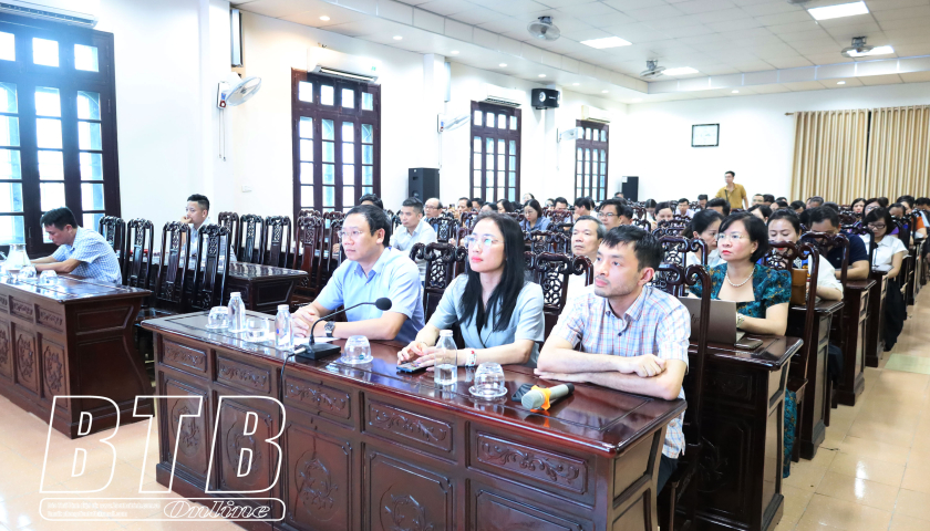 Lãnh đạo Sở Y tế và các đại biểu dự hội nghị tại điểm cầu Thái Bình.