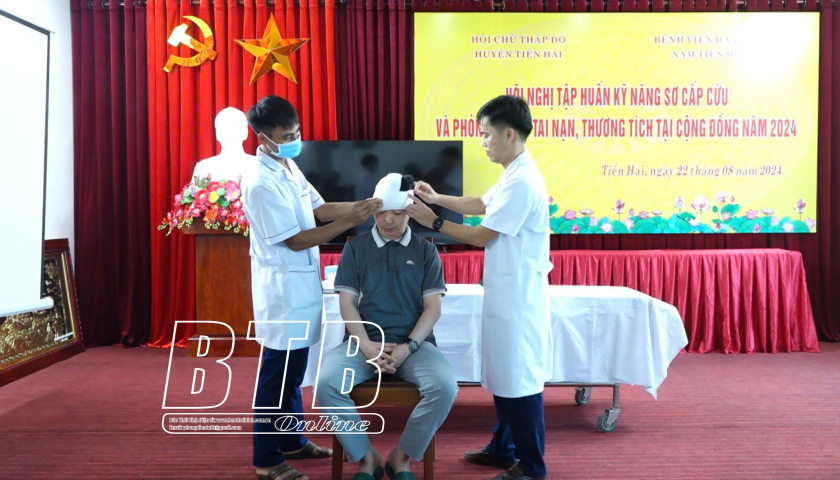 Sáng ngày 22/8, Hội Chữ thập đỏ huyện Tiền Hải phối hợp với Bệnh viện Đa khoa Nam Tiền Hải tổ chức tập huấn kỹ năng sơ cấp cứu và phòng tránh tai nạn, thương tích tại cộng đồng năm 2024.