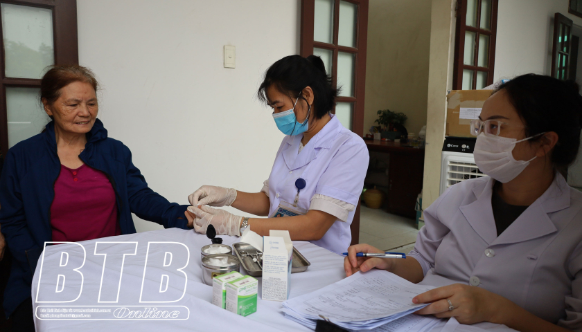 Nhân viên y tế xét nghiệm bệnh không lây nhiễm cho người dân huyện Vũ Thư.