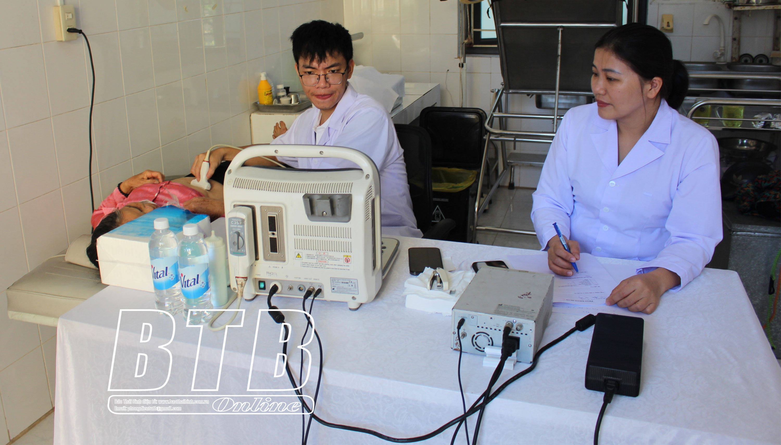 Bác sĩ khám bệnh, siêu âm miễn phí cho người dân.