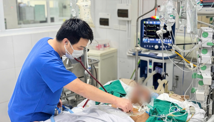Bệnh nhân mắc cúm mùa điều trị tại Bệnh viện Bệnh nhiệt đới trung ương. Ảnh: Bệnh viện cung cấp
