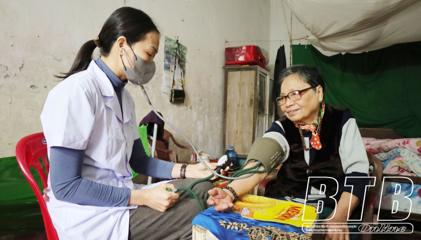 Cán bộ Trạm Y tế xã Dương Hồng Thủy (Thái Thụy) thăm khám sức khỏe cho người dân tại nhà.