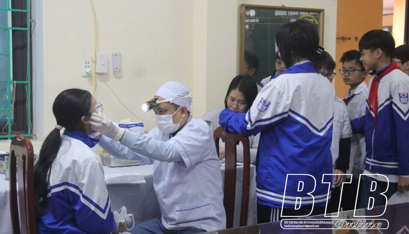 Trung tâm Y tế thành phố phối hợp với các trường học khám sức khỏe cho học sinh.