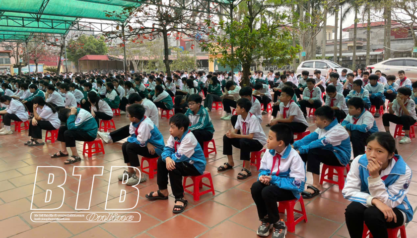 Hơn 400 học sinh Trường THCS Hợp Hưng (Đông Hưng) được truyền thông về phòng, chống dịch bệnh truyền nhiễm.