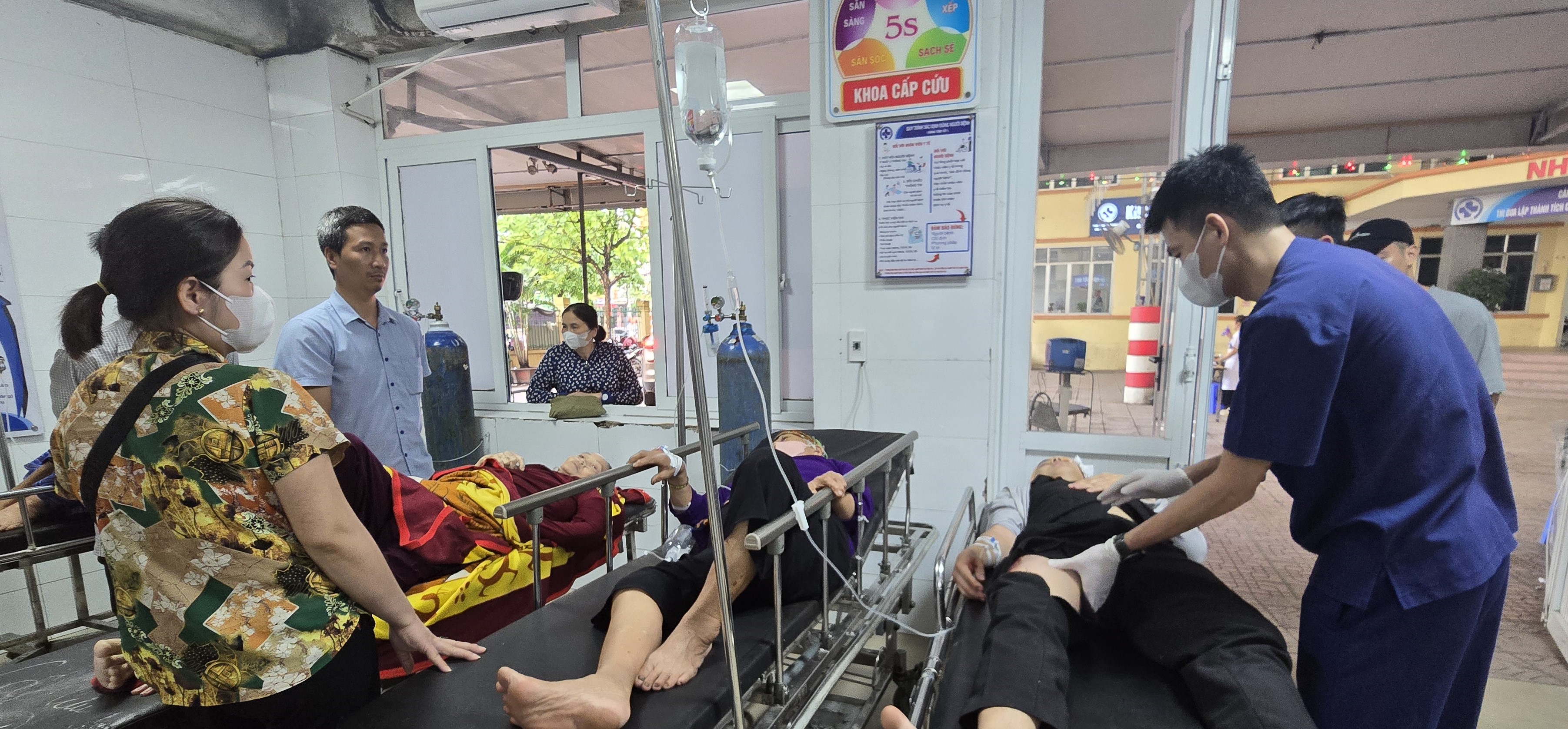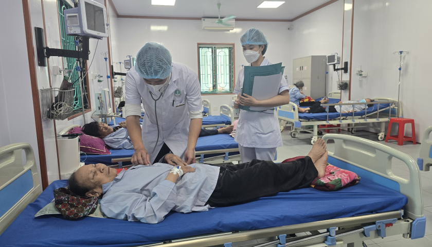 Bác sĩ Khoa Hồi sức cấp cứu - Thận nhân tạo, Bệnh viện Đa khoa Nam Tiền Hải chăm sóc bệnh nhân.