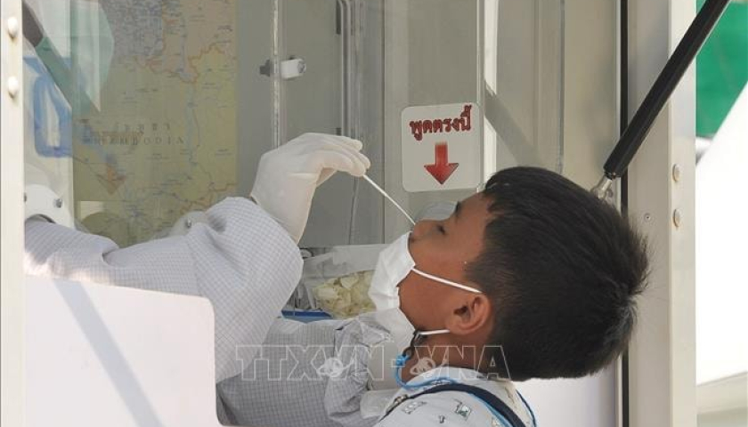 Nhân viên y tế lấy mẫu xét nghiệm Covid-19 cho người dân tại Bangkok, Thái Lan. Ảnh: THX/TTXVN