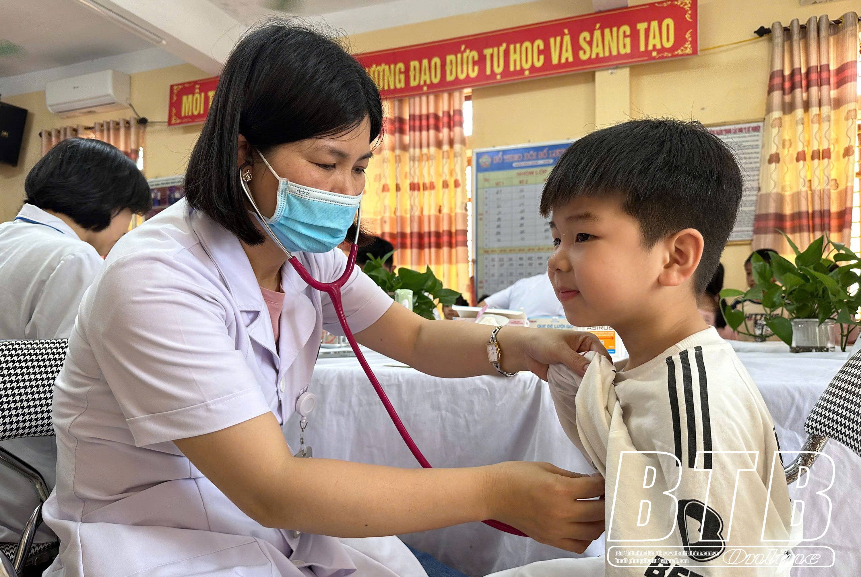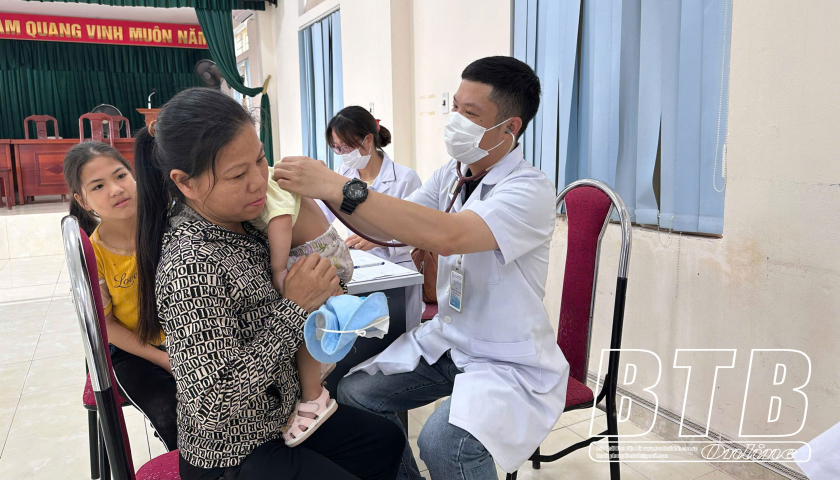 Trẻ em huyện Thái Thụy được khám lâm sàng miễn phí.