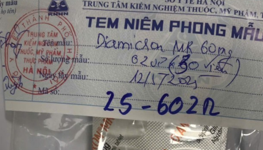 Theo đó, Cục Quản lý Dược nhận được văn bản của Trung tâm kiểm nghiệm thuốc, mỹ phẩm thực phẩm Hà Nội, gửi kèm Biên bản lấy mẫu thuốc, mỹ phẩm để kiểm tra chất lượng và Phiếu phân tích, báo cáo về việc mẫu sản phẩm có thông tin ghi trên nhãn: DIAMICRON ® MR 60mg (Gliklazid), số lô: 23F603, hạn dùng: 04.2026, không đạt yêu cầu chất lượng về chỉ tiêu Định lượng Gliclazid theo Dược điển Việt Nam V – chuyên luận Viên nén Gliclazid có kết quả là 42,5mg/viên (70,83% so với hàm lượng ghi trên nhãn).