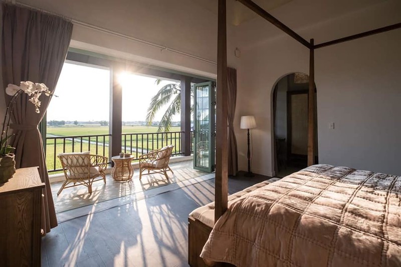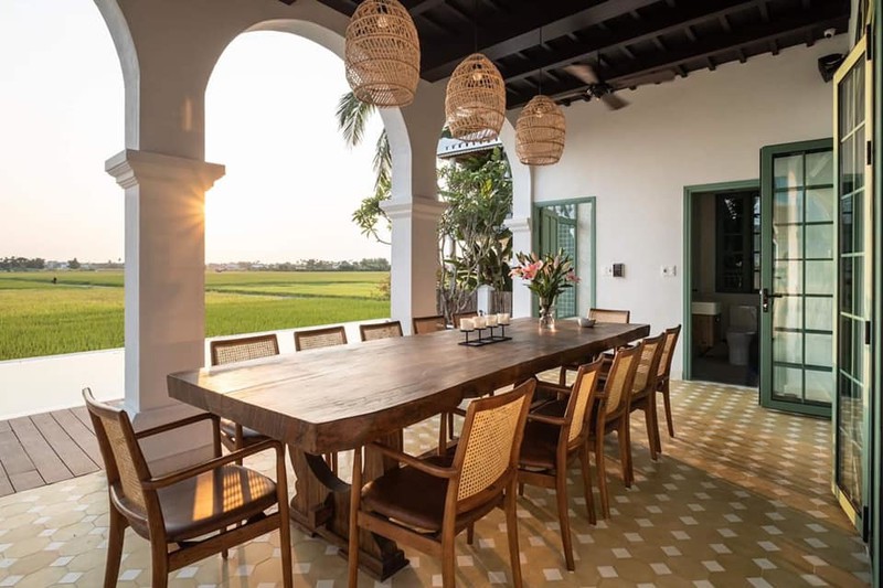 Ngôi nhà mộng mơ mang phong cách Indochine nằm giữa cánh đồng ở Hội An (Quảng Nam) có điểm đặc biệt là nhìn thấy hoàng hôn thẳng cánh cò bay.