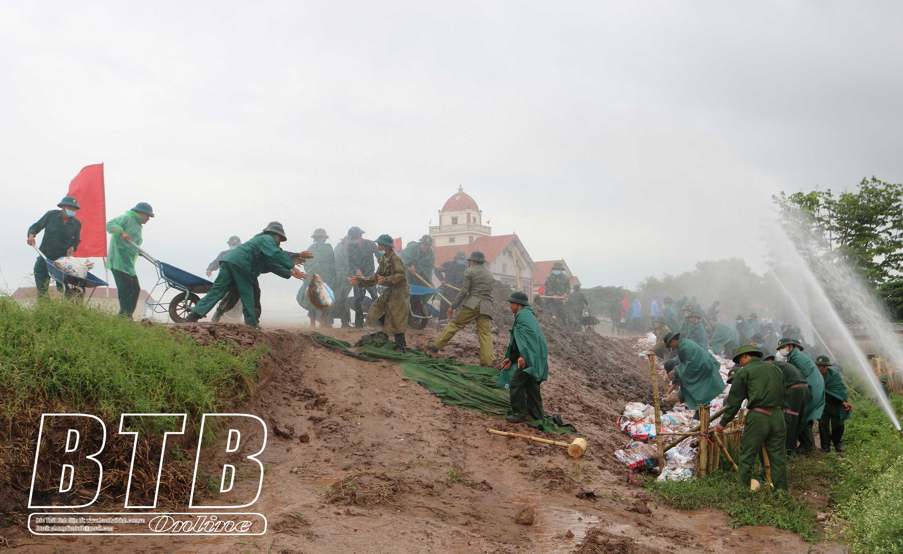 Với tình huống giả định cơn bão số 4 có sức gió mạnh nhất vùng gần tâm bão mạnh cấp 12, cấp 13, giật trên cấp 14, di chuyển rất nhanh theo hướng Tây – Tây Bắc, vùng tâm bão ảnh hưởng trực tiếp vào địa phương. Hệ thống đê, kè trên địa bàn tỉnh đang bị uy hiếp nghiêm trọng, ở một số trọng điểm của huyện Quỳnh Phụ xuất hiện nhiều mạch đùn, mạch sủi, thẩm lậu. Đặc biệt trên đoạn đê bối thuộc thôn Phú Khê, xã Quỳnh Lâm phát hiện có nhiều đoạn bị sạt trượt mái đê từ 50 - 70m có nguy cơ gây vỡ đê. Cùng với đó tuyến đê bối khu vực thôn Đồng Mỹ cũng có nguy cơ bị vỡ, đe dọa đến an toàn hệ thống đê và tính mạng của nhân dân.