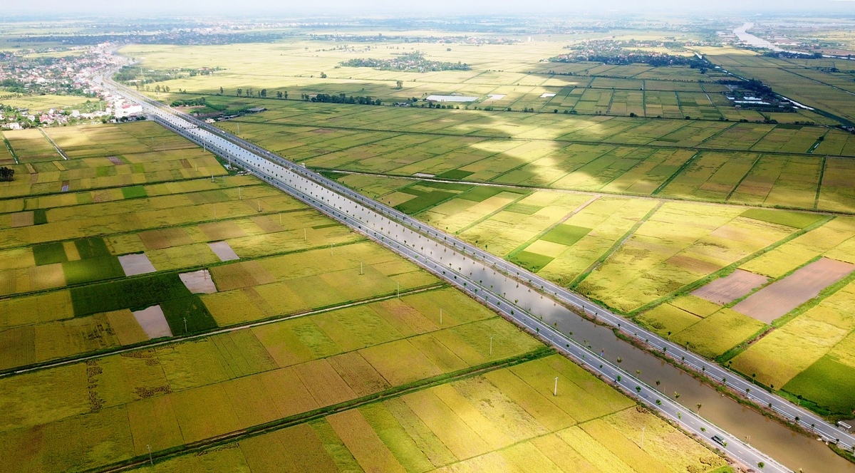 Tuyến đường đôi chạy giữa ruộng lúa vùng ngoại thành của Hải Phòng