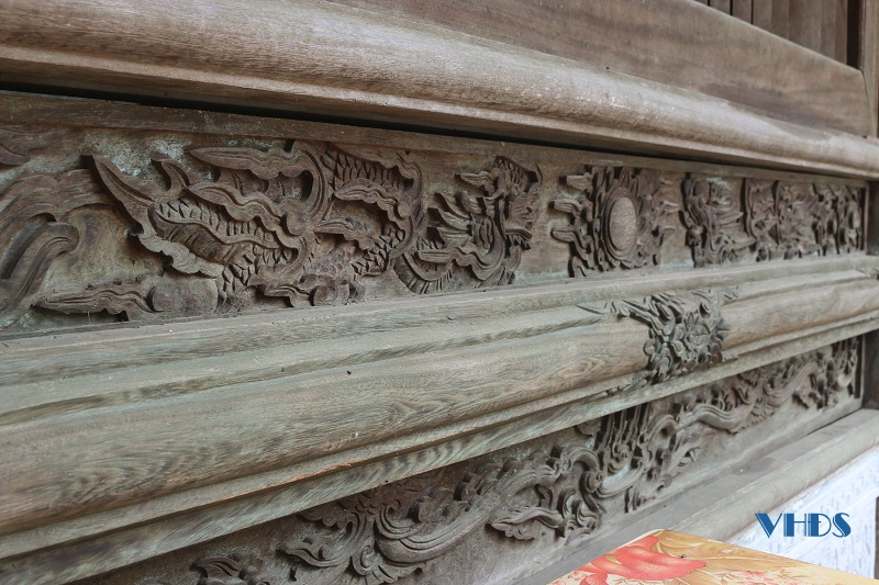 Nhiều mảng chạm khắc tinh xảo về những hình ảnh hoa lá, cây cỏ... thể hiện sự tài tình của nghệ nhân dân gian cũng như nói lên tâm hồn yêu thiên nhiên, yêu cuộc sống thanh bình của người dân nơi đây.