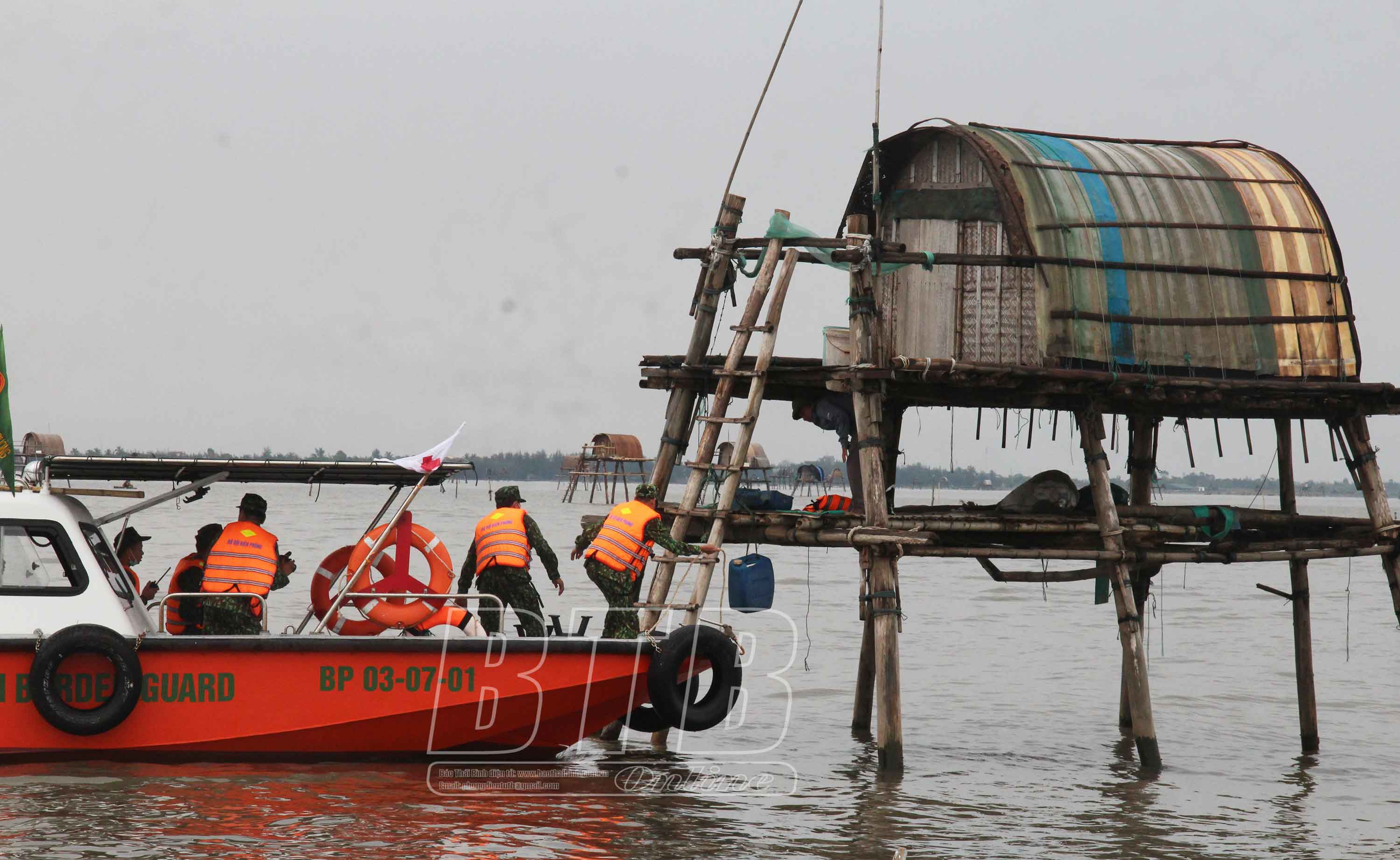 Diễn tập tình huống 2: cưỡng chế người cố tình ở lại chòi trông coi ngao vào bờ