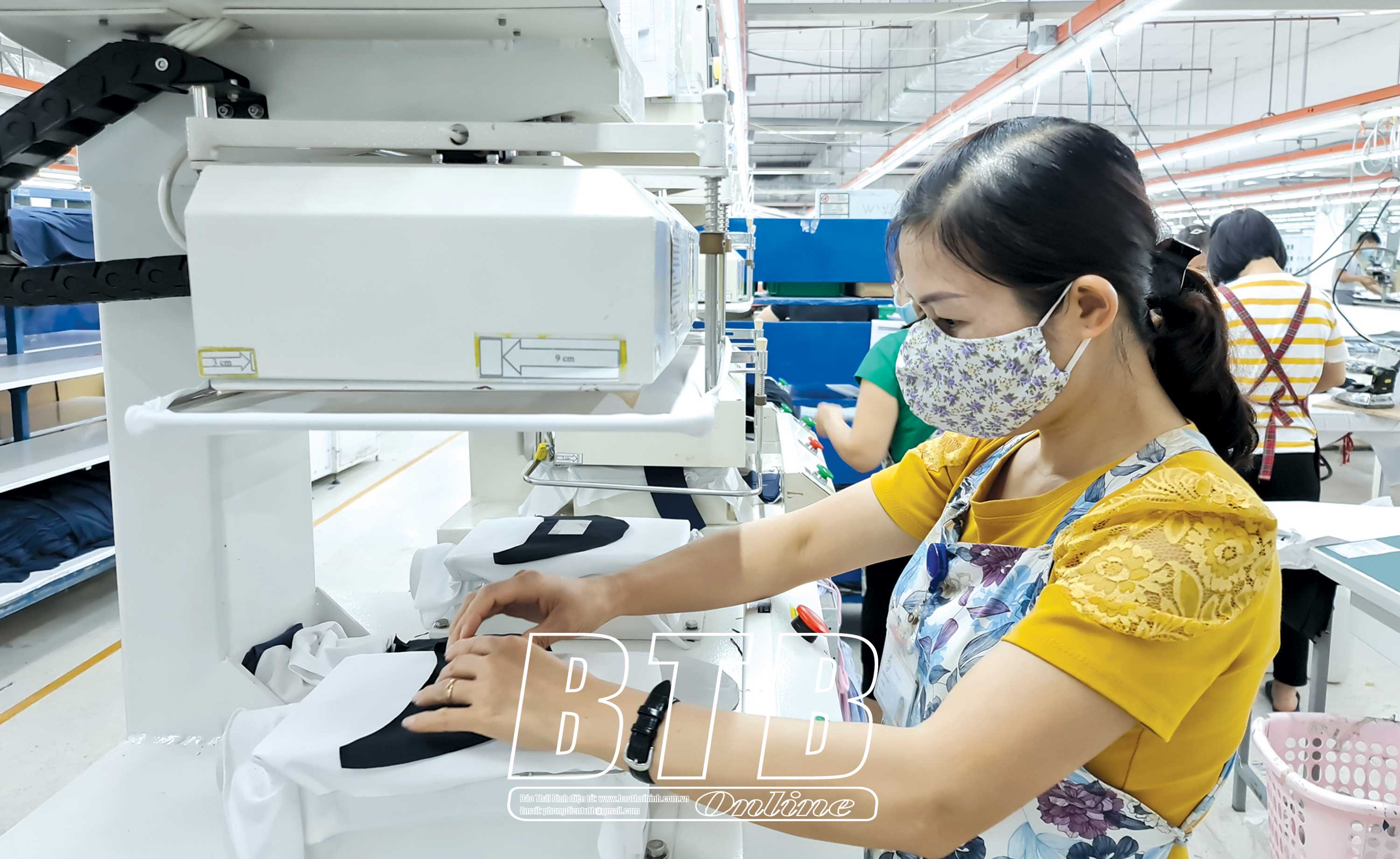 Nhà máy Tân Đệ 5 tại cụm công nghiệp Vũ Ninh (Kiến Xương) tạo việc làm ổn định cho người lao động.