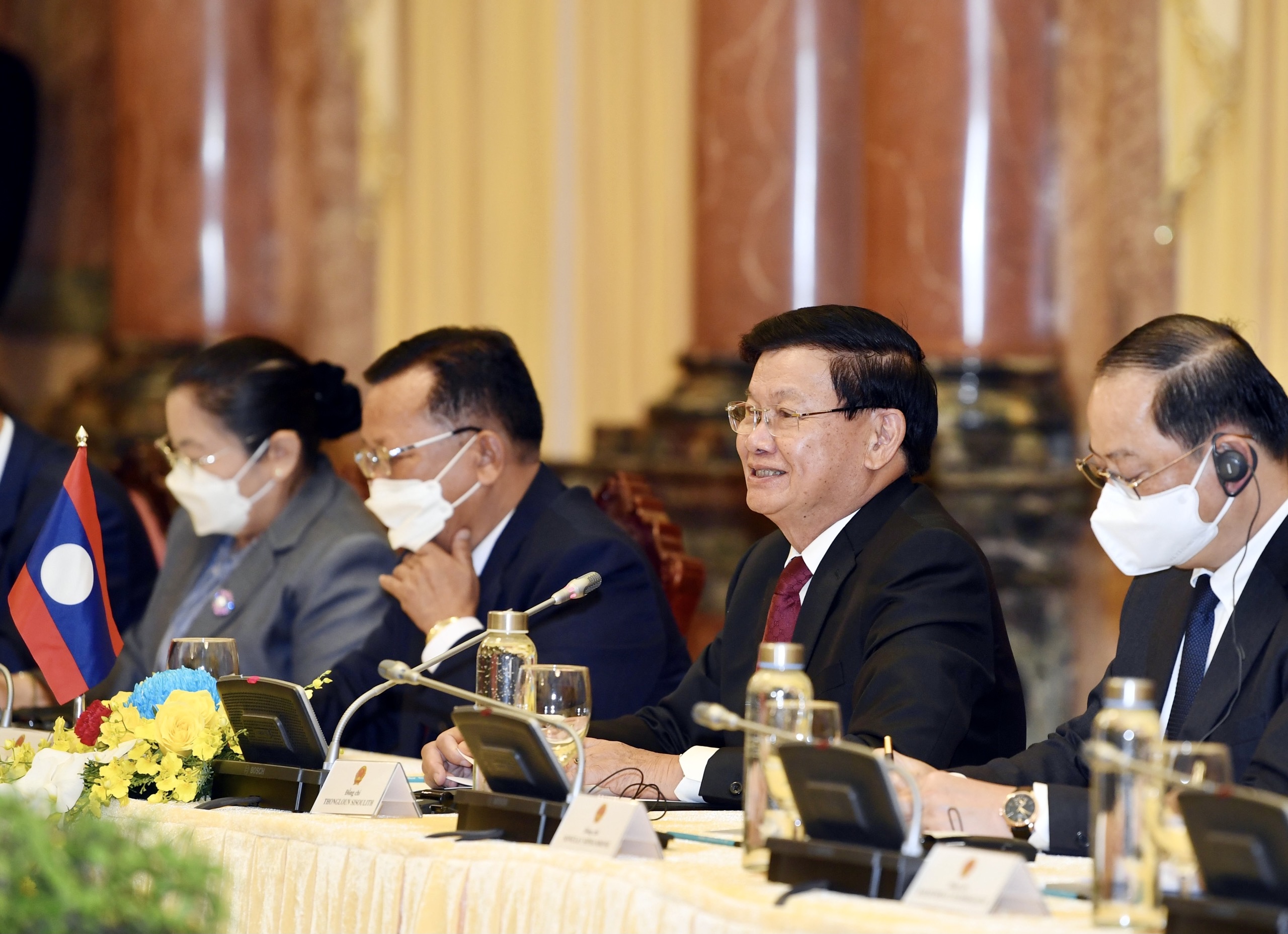 Nhân dịp này, Chủ tịch nước Nguyễn Xuân Phúc và Tổng Bí thư, Chủ tịch nước Thongloun Sisoulith đã trao đổi về hợp tác giữa hai nước tại các diễn đàn đa phương, nhất là ASEAN và các cơ chế tiểu vùng Mekong, hợp tác giữa ba nước Việt Nam, Lào và Campuchia. Chủ tịch nước Nguyễn Xuân Phúc chúc mừng Lào mới được bầu vào vị trí Phó Chủ tịch Đại hội đồng Liên Hợp Quốc khóa 76, thể hiện uy tín và vị thế của Lào không ngừng được nâng cao trên trường quốc tế.