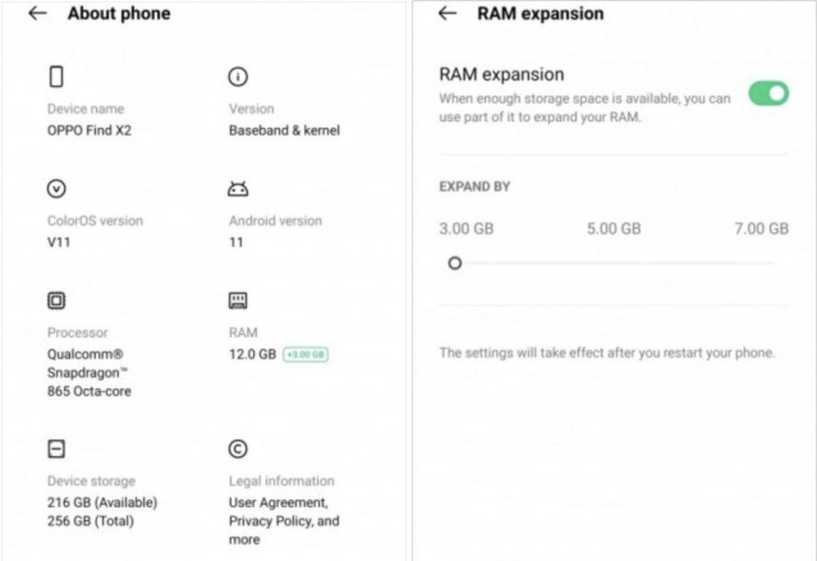 Tính năng RAM ảo không phải mới khi Vivo, iQOO và Realme đã trang bị tính năng này trên smartphone trước đó của mình. Tuy nhiên, người dùng không thể chọn dung lượng RAM trên smartphone giống của Oppo.